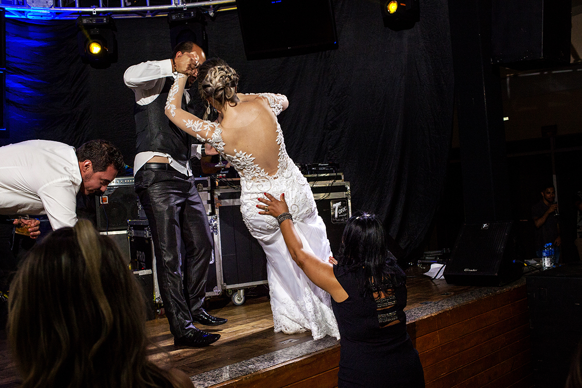 O Bruno e a Vanessa entraram de moto no salão, dai em diante a festa estava garantida...